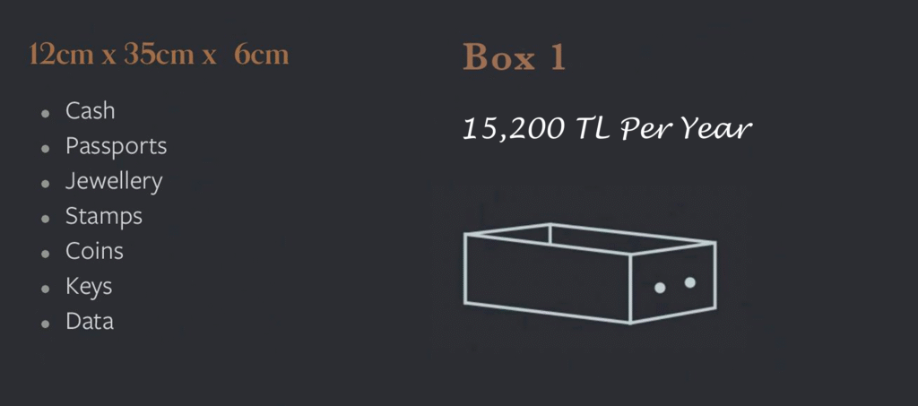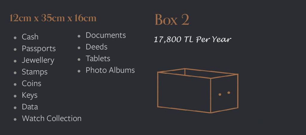 box two is slightly bigger than Box ONE. It can hold documents AS WELL AS pieces of jewelLEry, KEYS, COINS ETC.